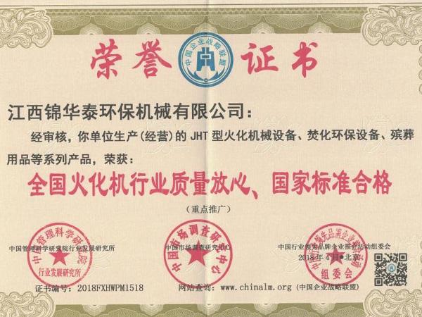 全國(guó)火化行業(yè)質(zhì)量放心合格